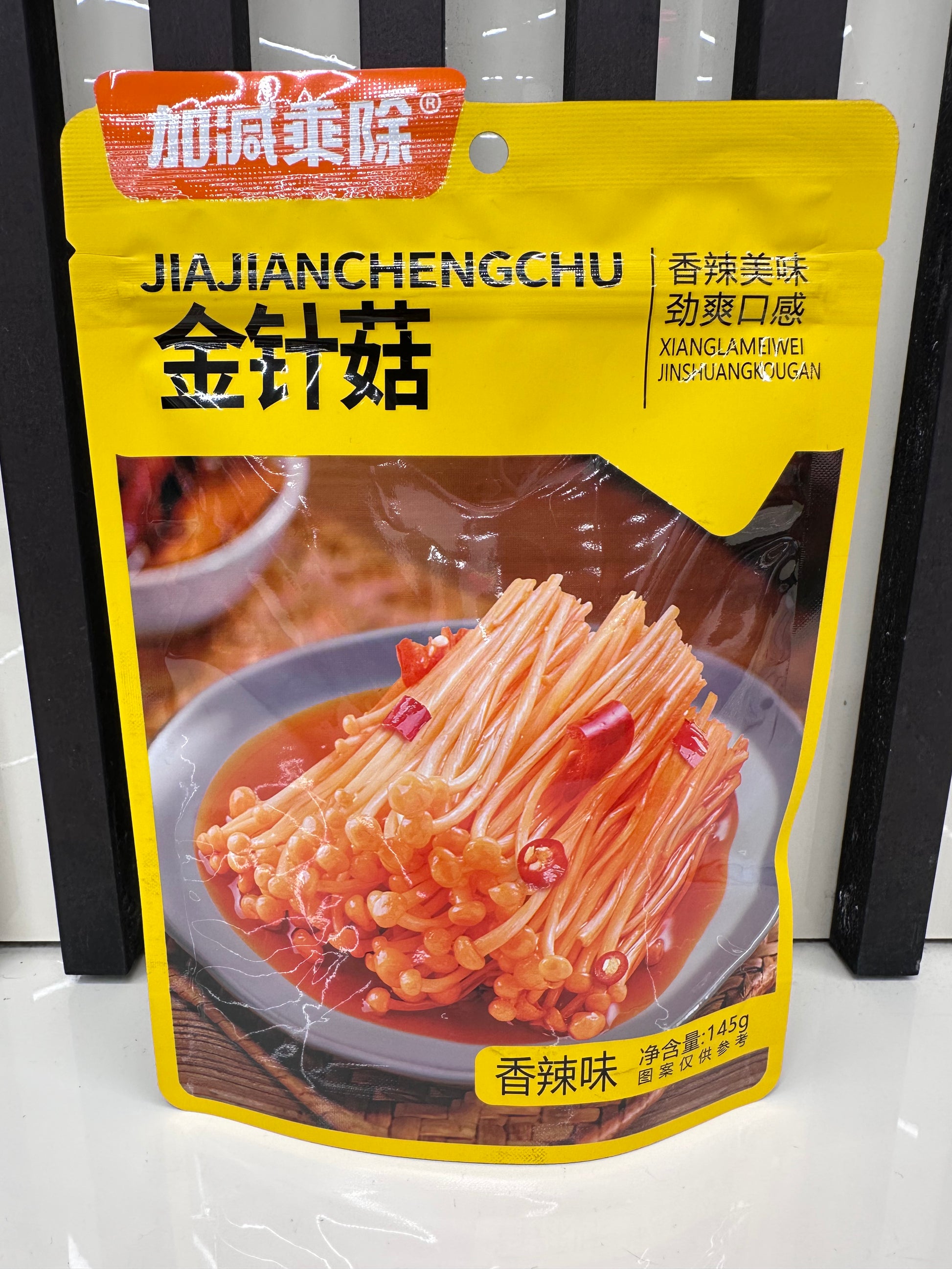 Ingredienti funghi (Flammulina velutipes), sale, zucchero olio ci colza peperoncino spezie esaltatori di sapidità (E621, E635): regolatore di acidità (E330), edicorante (E950*) conservante (E202) antiossidante (E316), aromi. *=Acesulfame K (contiene una fonte di fenitalanina).