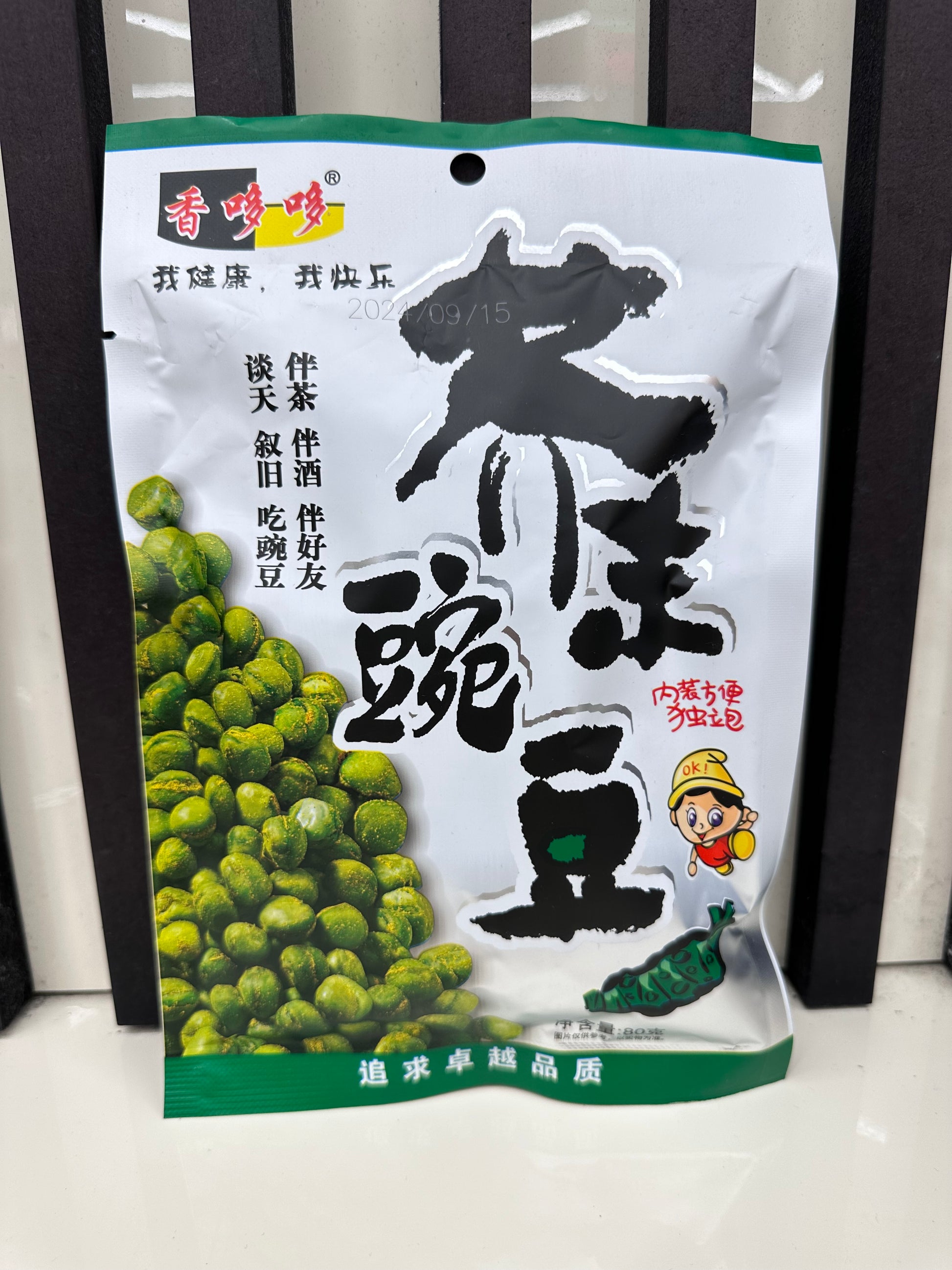 Snack di piselli croccanti tostati al wasabi.